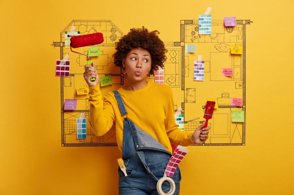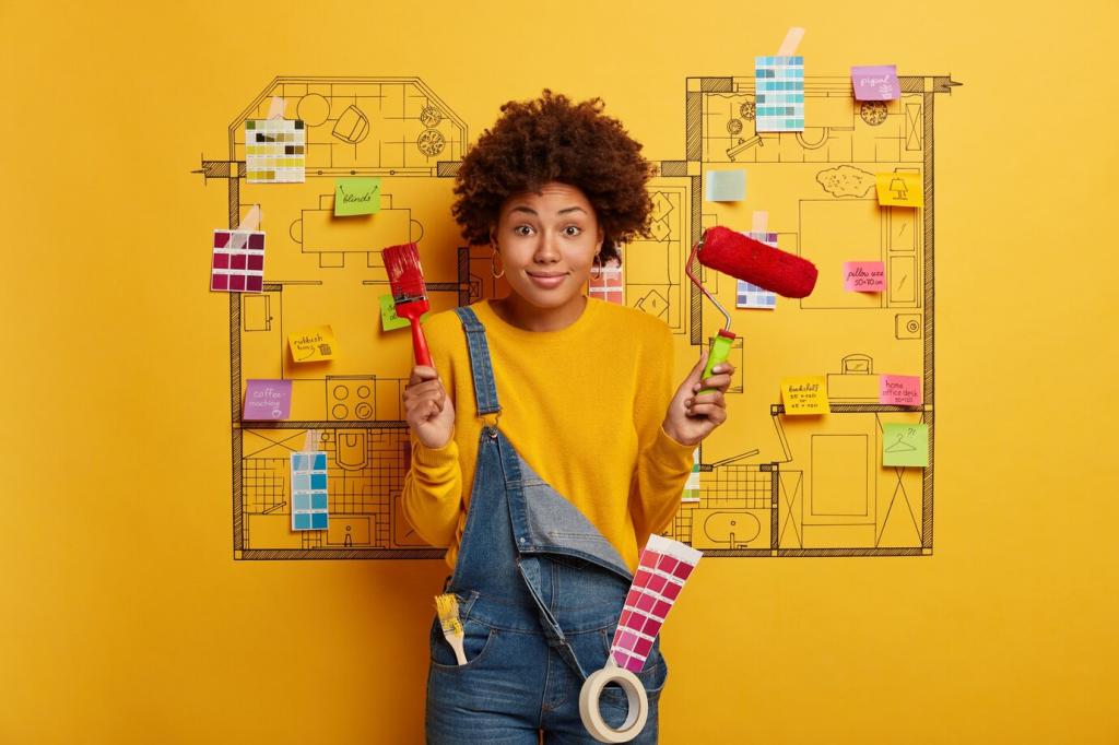 Eine abgenutzte Flohmarkt-Kommode wurde bei uns zum Blickfang: Wir reparierten Schubladen mit Holzleisten, setzten neue Griffe, glätteten alte Lacknasen und trugen Kreidelack in zwei Tönen auf. Nach sanftem Anschleifen leuchtete die Patina durch – Geschichte und Gegenwart vereint.